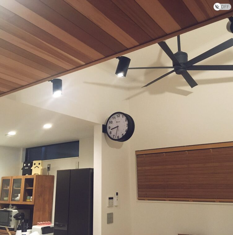 3. 開放感を演出する【シーリングファン × ダウンライト風スポット】