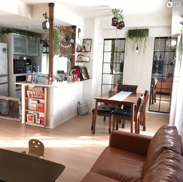 天井が高めのお家なら、リビングにシーリングファンライトを設置するのも憧れますよね。空気を循環させて冷暖房効率を上げつつ、リゾートホテルのような優雅な雰囲気を演出できます。