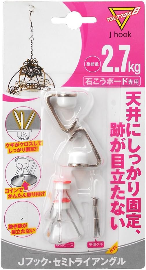 これは、画鋲よりもさらに細い数本のピンを斜めに打ち込むことで、耐荷重を確保しつつ、抜いた後の穴をほとんど目立たせないという画期的なアイテムです。具体的には、「マジッククロス8」や「Jフック」といった製品が有名ですね。