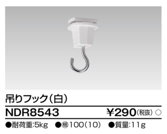 私が今回リサーチして一番驚いたのが、東芝ライテック製のライティングレール用フック(NDR8543など)の存在です。