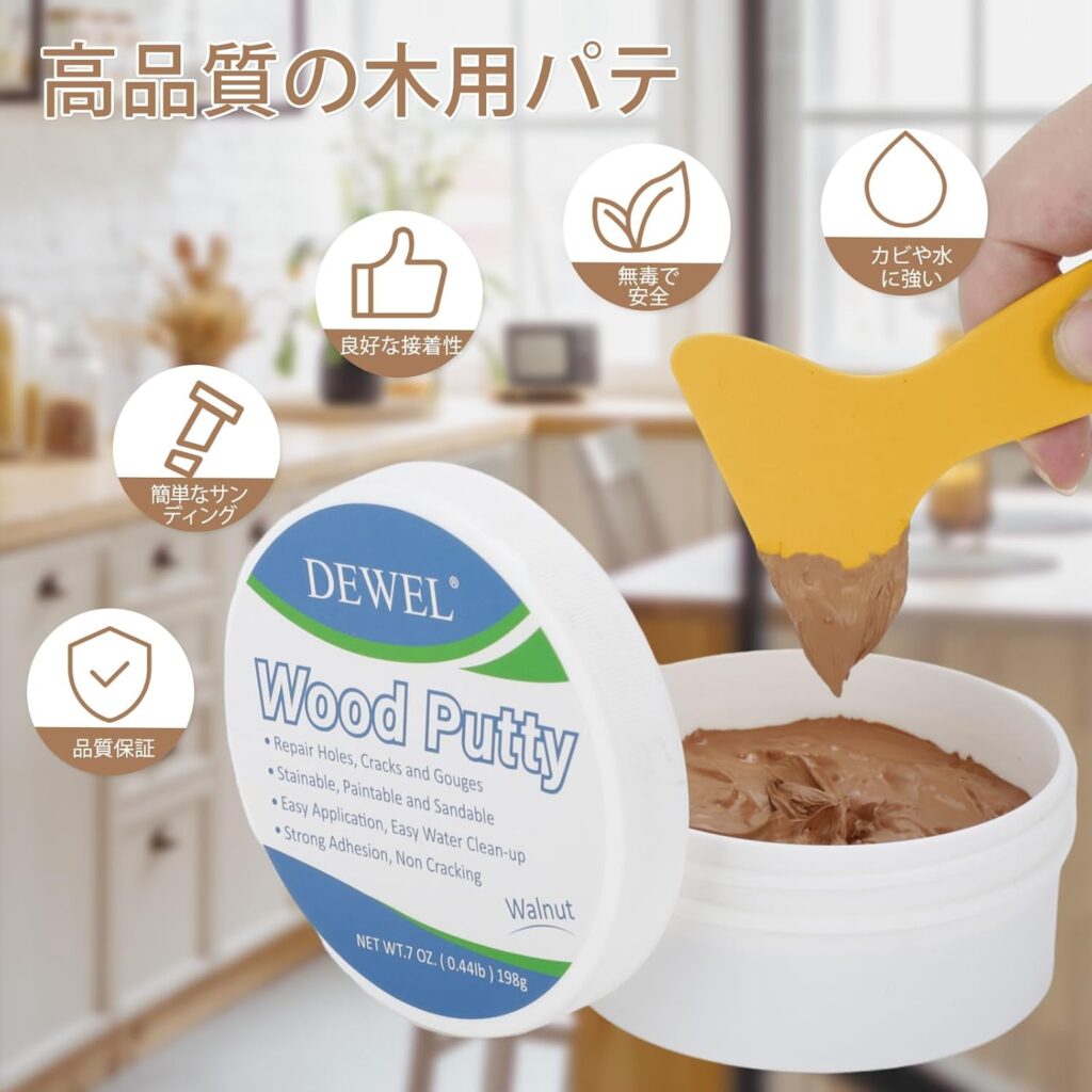 特にダイソーやセリアで売られているパテは、白、アイボリー、ベージュなど、日本の一般的なクロスの色を絶妙にカバーしています。使い方は簡単で、穴の部分にパテを少量押し込み、ヘラやつまようじの背で平らにならすだけ。乾くと周囲の壁紙と一体化して、どこに穴があったか探すのが困難なほど綺麗になります。