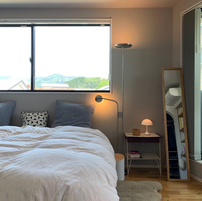 部屋の入り口から一番遠い対角線の隅に配置してみてください。視線が自然と部屋の奥に誘導され、入り口に立った瞬間の奥行き感が劇的に向上します。6畳一間であれば、これ一本と読書灯の併用で、主照明を消したムーディーな生活が十分に可能です。