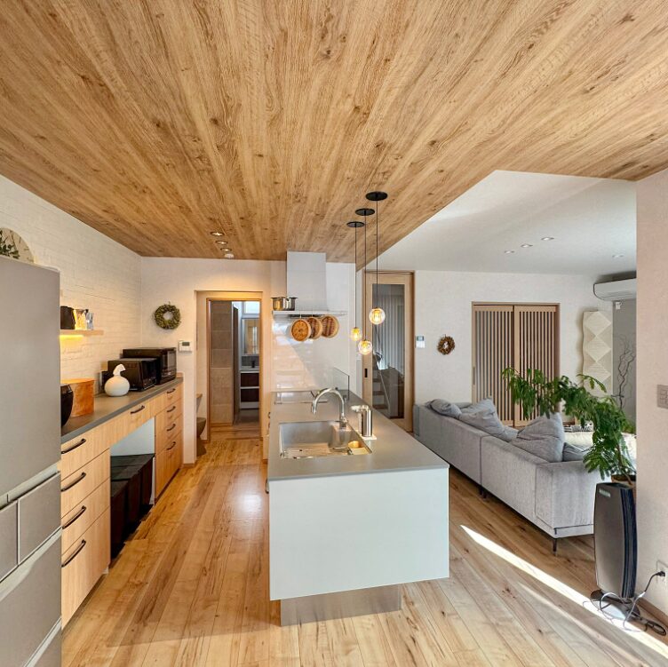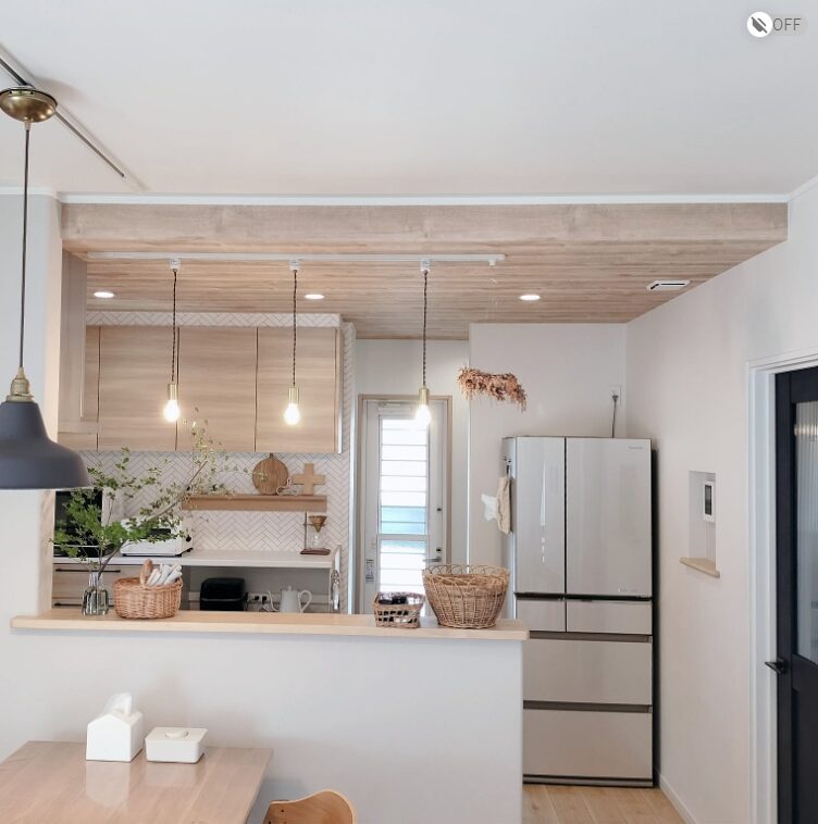真っ白で無機質になりがちな天井に、木(ウッド)の温かみのある素材感をプラスすることで、まるでカフェのようなおしゃれで洗練された雰囲気が一気に高まります。