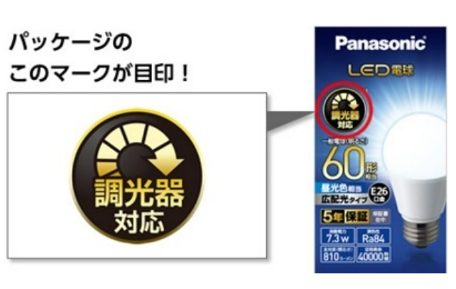 調光器がついている回路には、必ずパッケージに「調光器対応」というマークが記載された製品を選んでください。