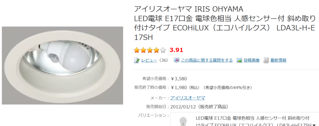 「トイレの電球ごときにお金をかけたくない」と思うかもしれませんが、毎日のことなので、ここのストレスを解消する投資対効果は意外と高いですよ。