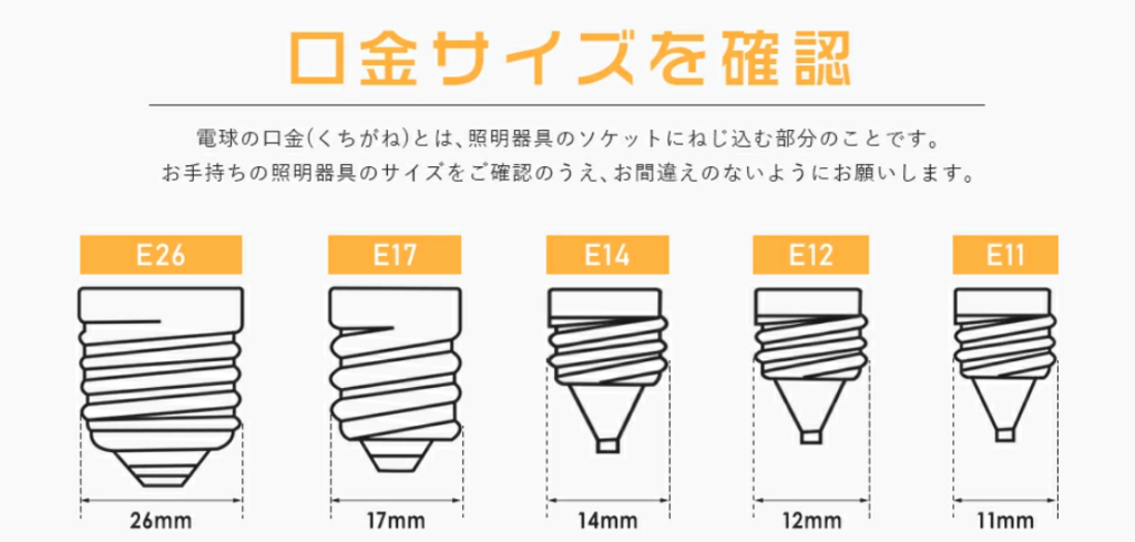 1. 口金の直径を確認:E26かE17か、あるいはE11か?
