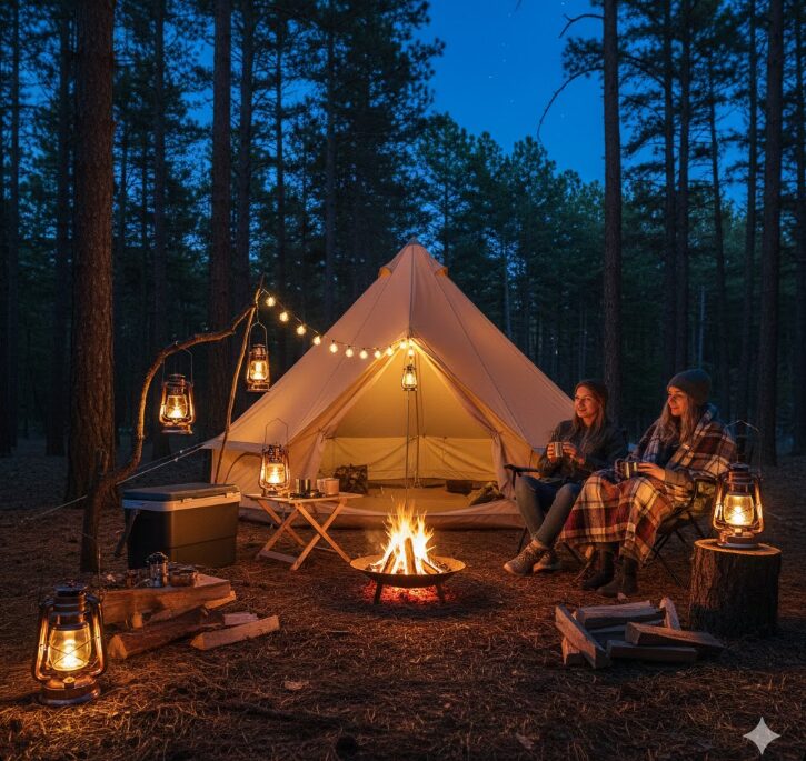 - テント内:火気は絶対NG。暖色系の小型LEDランタンでリラックス。