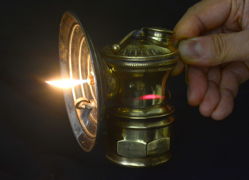 しかし、このカンテラは単なる照明以上の意味を持っていました。坑道内では「酸素欠乏」という目に見えない恐怖が常に隣り合わせです。アセチレンの炎は酸素濃度が低くなると、目に見えて火の形が小さくなったり、色が変化したりします。