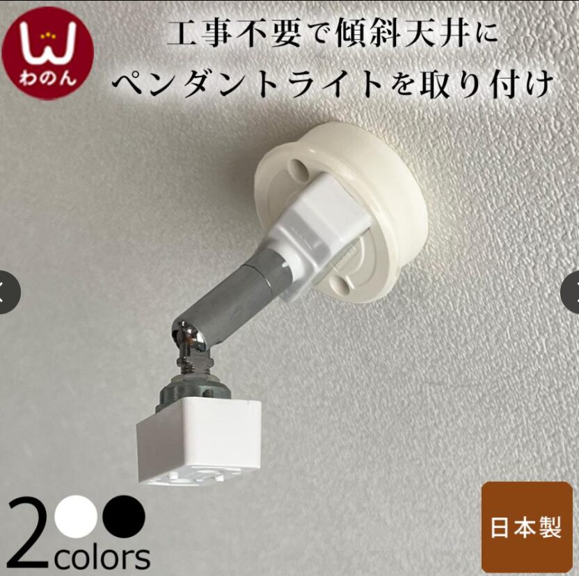 市販されている「傾斜天井用アダプター」を使用する方法もあります。これは、既存の引っ掛けシーリングとペンダントライトのプラグの間に挟み込むように取り付けるパーツです。