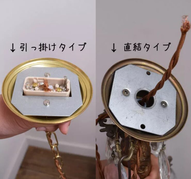 「直結タイプ」とは、天井から出ている電気配線コードに、照明器具のコードを直接結束させて接続する方法です。