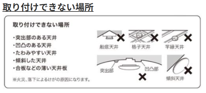 - 天井にネジ穴が開くため、賃貸住宅の場合は原状回復の確認が必要です。